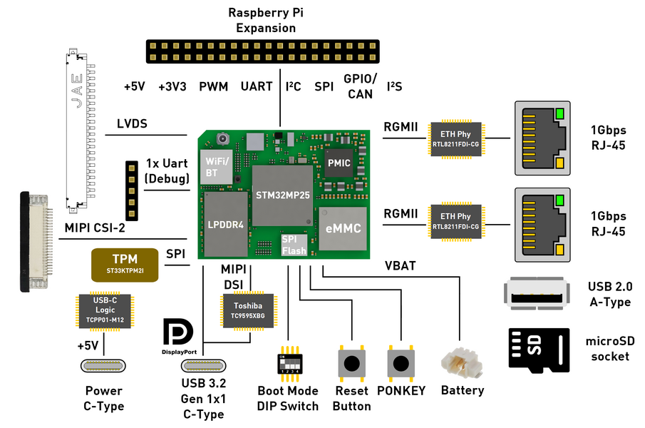 Neuronal Processing Unit (NPU) VeriSilicon® with up to 900 MHz and 1.35 TOPS | Video decode / encode H264 up to 1080p60