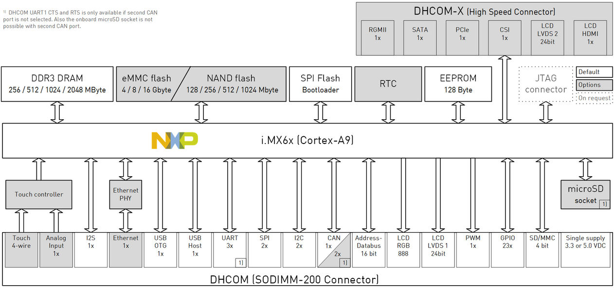 The DHCON i.MX6 System on Module is the powerful all-rounder with high flexibility through Solo, Dual, DualLite and Quad Core processor with 2D73D graphics accelerator and image processing unit from DH electronics. The proven i.MX microcontroller series from NXP is based on ARM architecture and is designed for low power consumption. The i.MX processors are SoCs that combine several processing units on one chip. Thanks to the SODIMM-200 socket and 5-cent cooling solution, the DHCOM i.MX6 can be combined with other modules from the DHCOM family and does not require a heat sink. The DHCOM i.MX6 uses mainline open-source Linux as operating system and DH electronics guarantees a long-term availability of 10+ years.